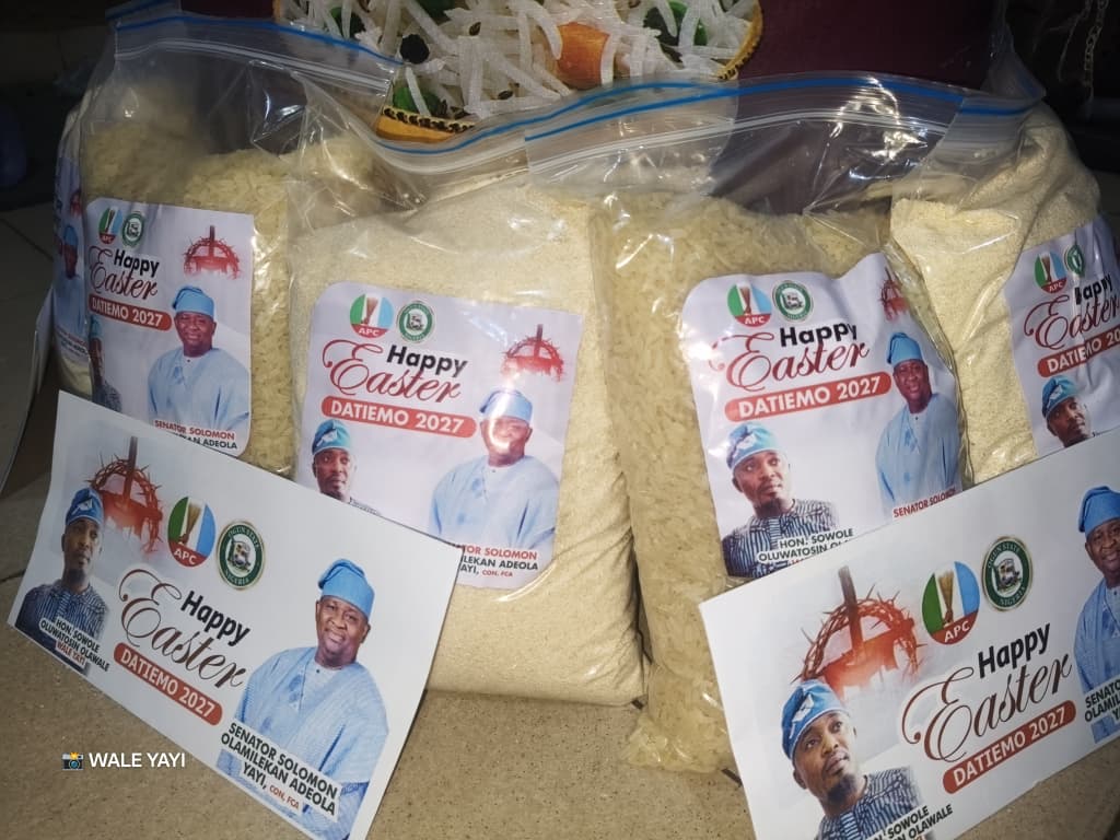 In a continued show of philanthropy and interfaith solidarity, Hon. Olawale Sowole, popularly known as Wale Yayi, a staunch loyalist of Senator representing Ogun West, Senator Solomon Olamilekan Adeola, has distributed food items and cash gifts to no fewer than 500 Christians in celebration of Easter, in support of the lawmaker.