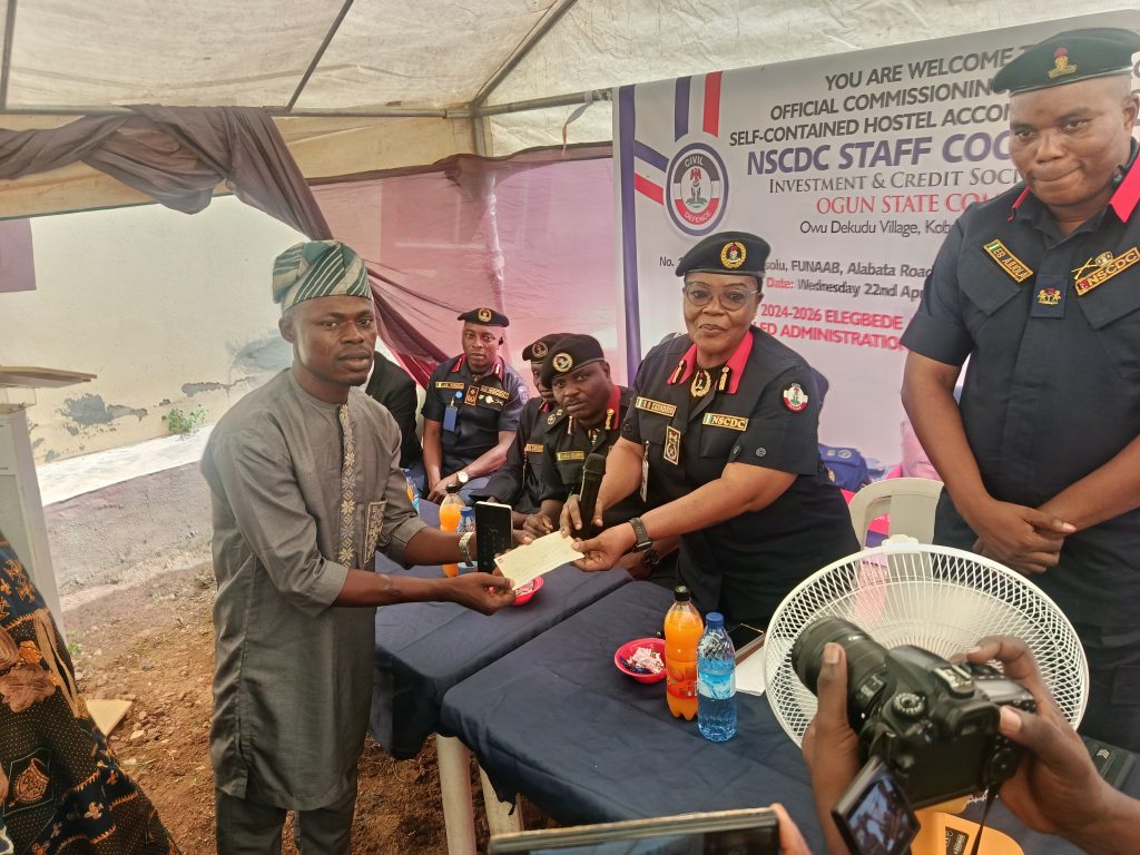 The Ogun State Commandant of the Nigeria Security and Civil Defence Corps, NSCDC, Remilekun Omolade Ekundayo today led the commissioning of a 13-room self-contained hostel complex in Isolu community, Abeokuta, describing the project funded by the Ogun NSCDC Staff Cooperative Investment and Credit Society Limited as a strategic blend of welfare, security and economic foresight.