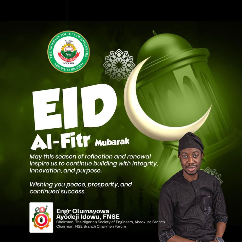 The Nigerian Society of Engineers (NSE), Abeokuta Branch, has felicitated with its Muslim brothers and sisters on the occasion of Eid al-Fitr, marking the successful completion of the holy month of Ramadan.