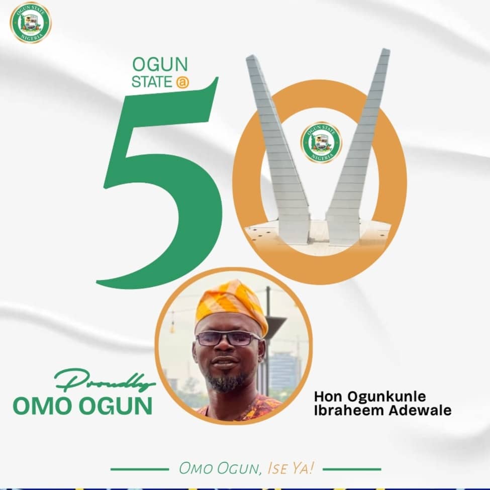 The Special Adviser to the Executive Chairman of Abeokuta North Local Government on Community Development and Social Welfare, Hon. Ogunkunle Ibraheem Adewale popularly known as Hadjour, has congratulated the Governor of Ogun State, Prince Dapo Abiodun, and the Chairman of Abeokuta North Local Government, Hon. Oyegbola Sodipo, as Ogun State marks its 50th anniversary.