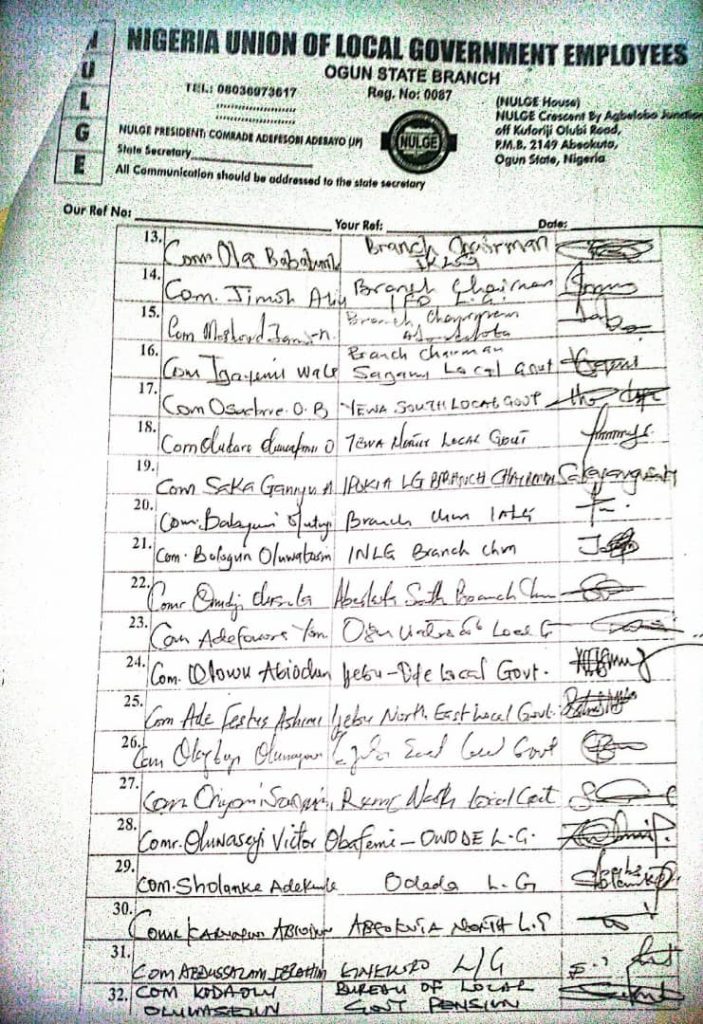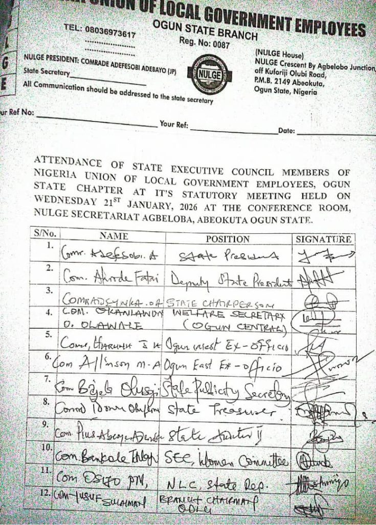The communiqué was formally addressed to Governor Abiodun and signed electronically by Comrade Adefesobi Adebayo, State President of NULGE Ogun Chapter.